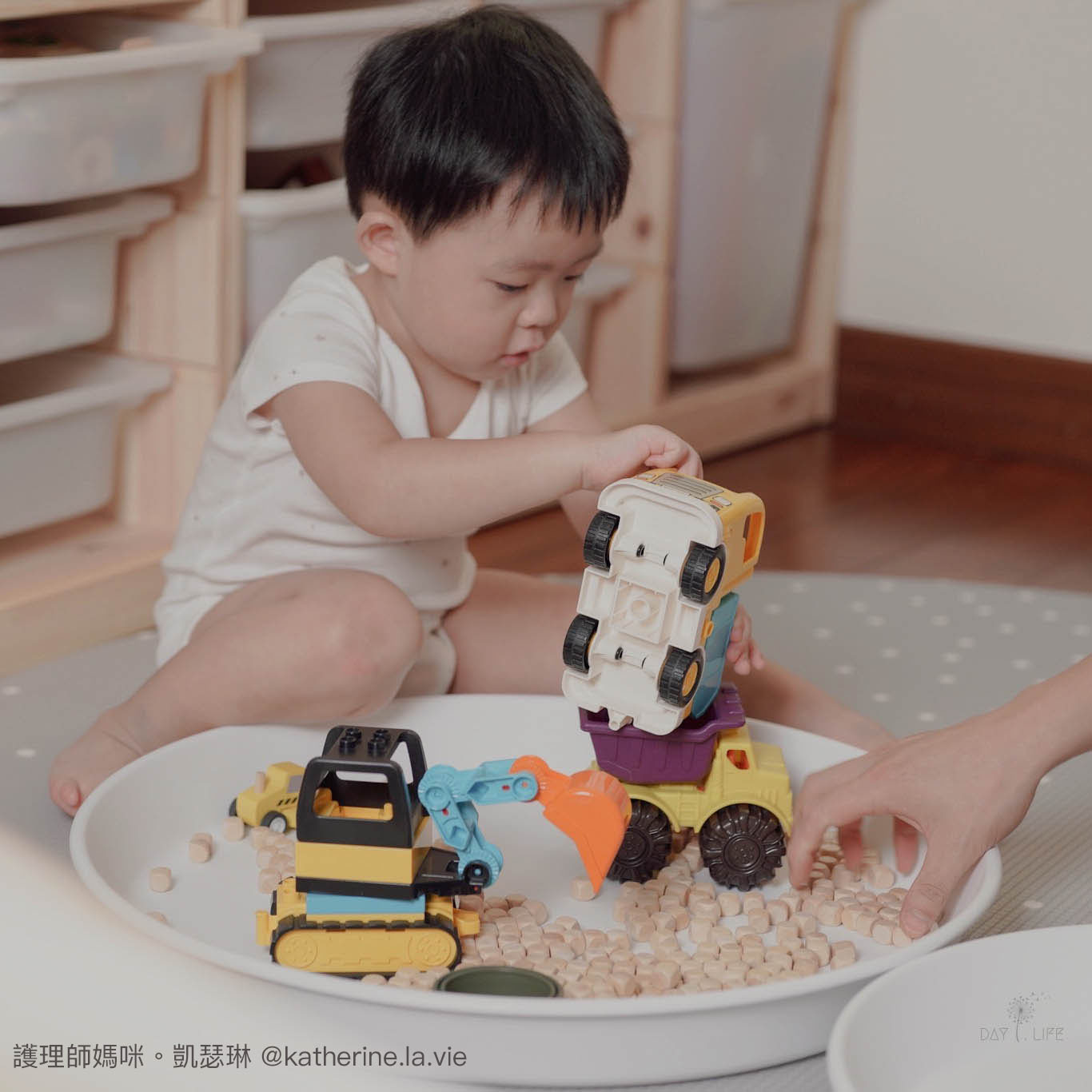 只要給孩子一個小規範,就是要在玩玩盆裡玩喔~